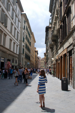 Streets of Florence Previous Next Published May 8, 2015 at 478 × 715 in Streets of Florence Streets of Florence The author taking her own advice – on her way to the Ponte Vecchio with nutella-covered waffle in hand.