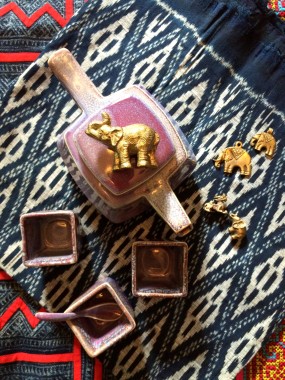 Thai teapot set on indigo textile